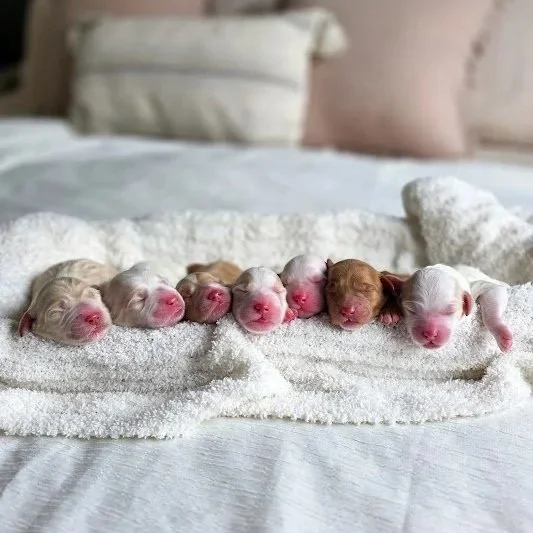 Saylor and Bubba are both amazing dogs and we are really looking forward their puppies. We loved Bubbas puppies with Indy so much that we decided to use him with Saylor. We have had many request for a little smaller size and this litter will fit that request. This litter will have gorgeous coloring in deep reds and apricots with abstract and parti markings. They will have amazing thick coats that will be wavy or straight. We love the wavy or straight coats because they are a little less maintenance but still so fluffy and soft. These puppies will have an estimated adult weight of 15-30 pounds. If you are wanting more information on this litter or would like to join our waitlist please message us.